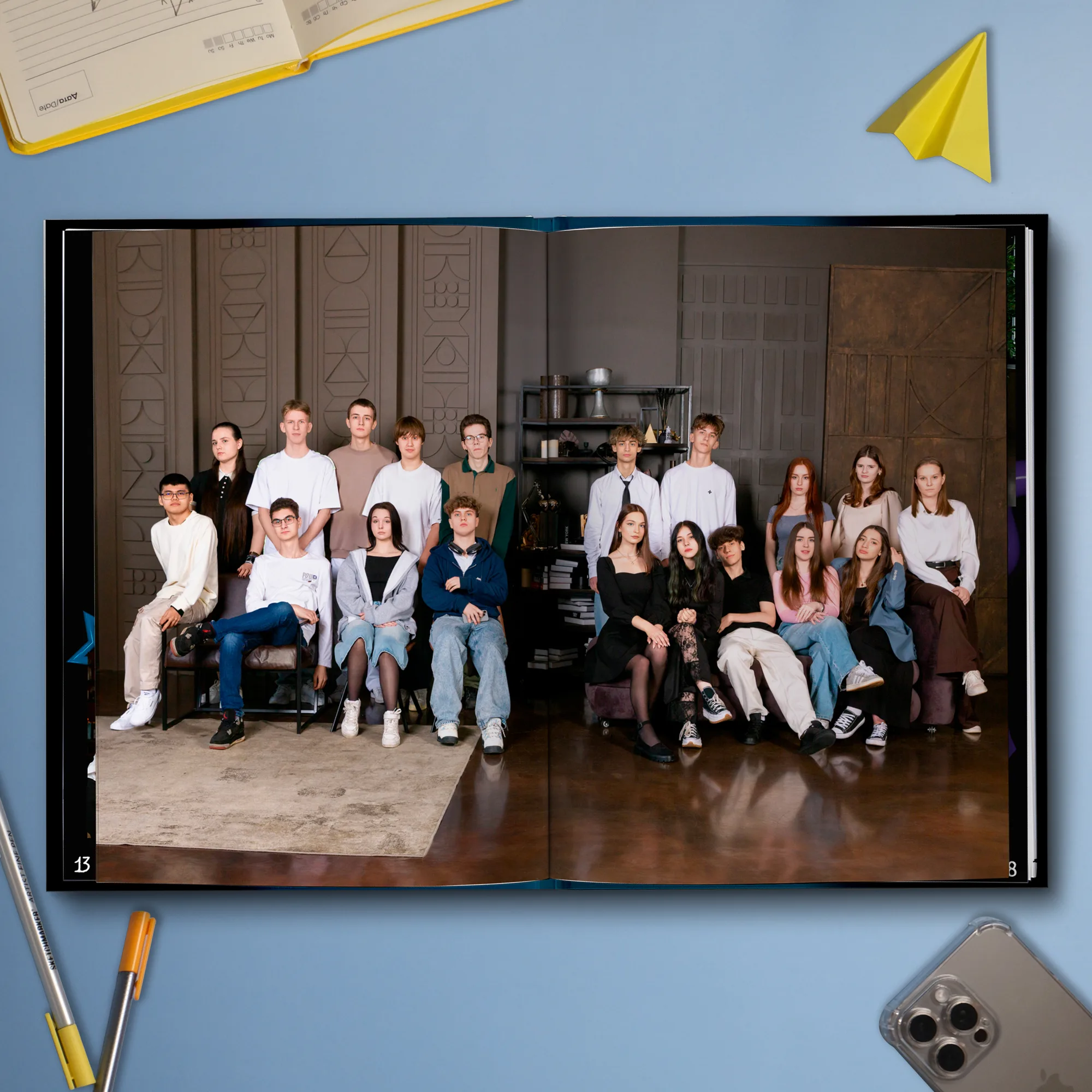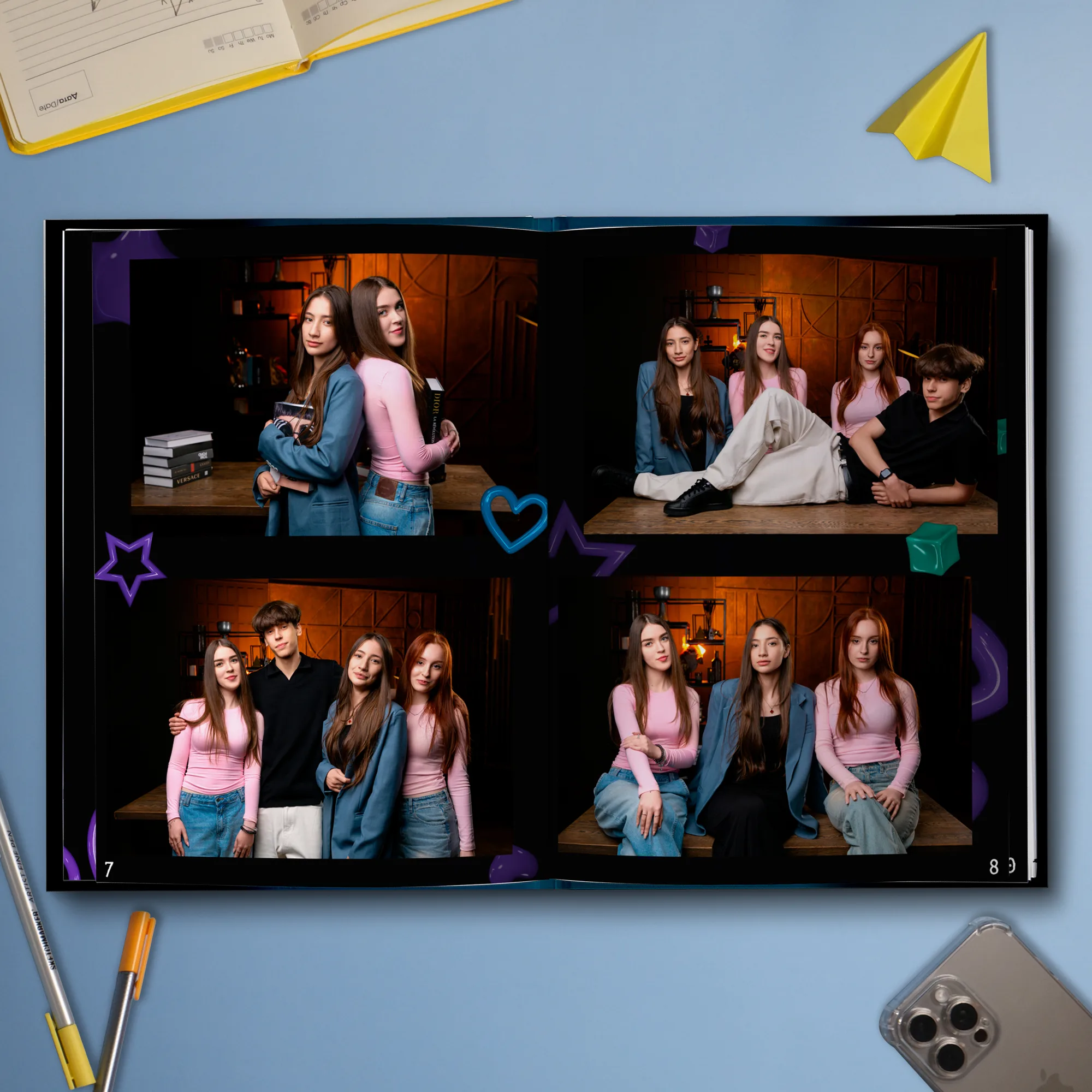 Последние 3 разворота — общие репортажные фотографии класса (12 шт.)